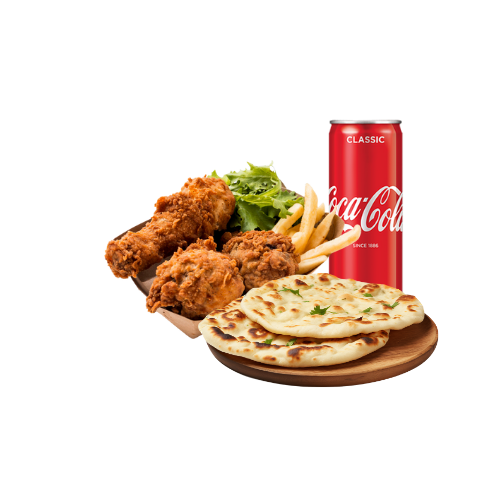 3 pcs + Cold Drink(Tin) + 2 Bun + Fries